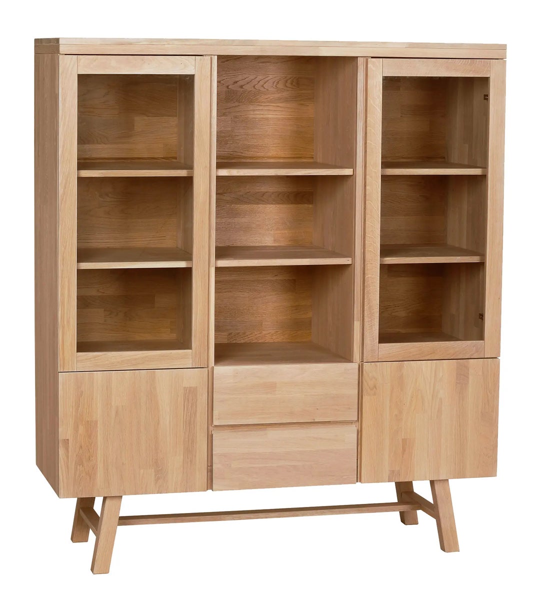 Selkeälinjainen, skandinaaviseen sisustukseen sopiva täyspuinen vitriini, jossa on runsaasti säilytystilaa sekä pehmeästi sulkeutuvat ovet ja laatikot. Valmistettu massiivisesta, sormijatketusta eurooppalaisesta tammesta. Brooklyn-sarjan kaikki osat ovat FSC®-sertifioituja.